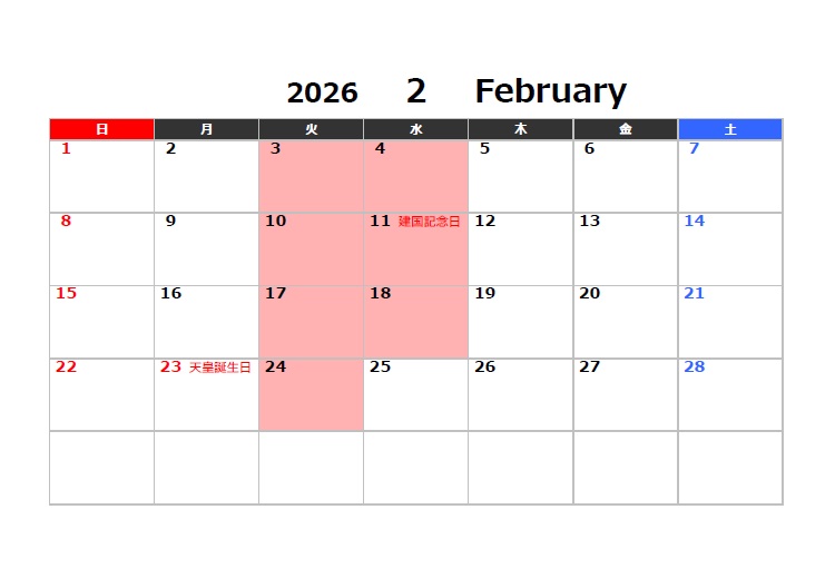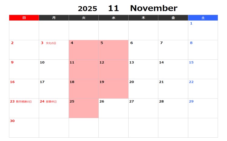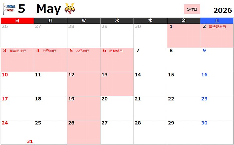 営業カレンダー(ショールーム・サービス工場 10:00~18:00)